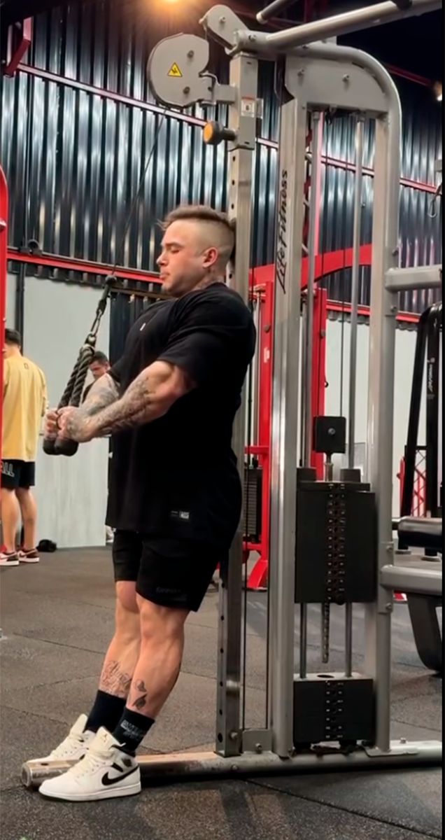 🔸 Ejercicio 3 – ExtensiĂłn de trĂceps con cuerda al pecho (circuito A y B)